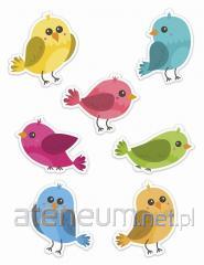 Zestaw składa się z 20 elementów - 2 karmników, 6 fruwających ptaszków, 2 siedzących ptaszków oraz 10 innych elementów (kwiaty, owady, robaczki).