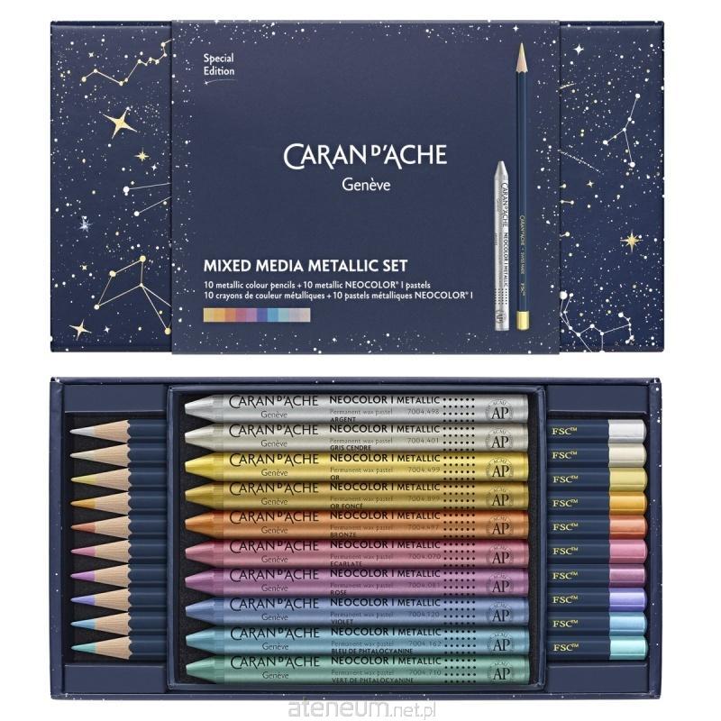 Zestaw kredek szwajcarskiej marki Caran dAche z kolekcji Cosmic Blue 20 metalicznych kolorów.