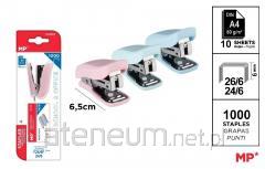 Nowoczesny zszywacz biurowy STARPAK. Zszywa jednorazowo do 12 kartek gramatury 80 g/m2. Do zszywacza należy stosować zszywki No. 10. Magazynek mieści 100 zszywek. Głębokość zszywania - 60 mm. Możliwość zginania zszywek do wewnątrz i na zewnątrz. Bezpieczny system zamykania magazynka. Zapoznaj się również z innymi produktami Starpak dedykowanymi dla biura! . Do zszywacza należy stosować zszywki No.10. Produkt wykonany z plastiku oraz metalu. Zszywacz w kolorze granatowym.