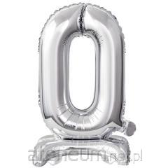 Balon foliowy mini cyfra 0 na stojaku srebrna
