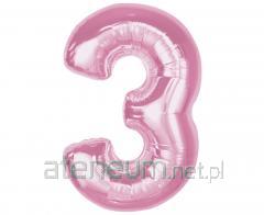 Balon foliowy cyfra 3 jasnoróżowa Smart 92cm