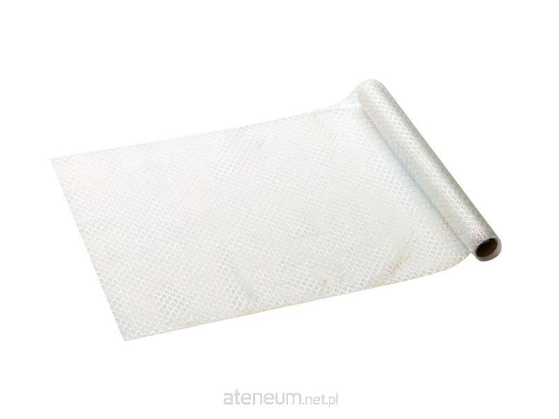 Bieżnik tiulowy Łuski w kolorze białym, szerokość ok. 36 cm, długość ok. 3 m.