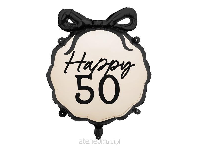 Balon foliowy pastylka Happy ''50'', mix kolorów. Wymiary przed napompowaniem ok. 57,5 x 56 cm (22,5 x 22''), wymiary po napompowaniu ok. 47,5 x 45 cm (18,5 x 17,5''). Do napompowania powietrzem i helem. Zestaw zawiera słomkę.