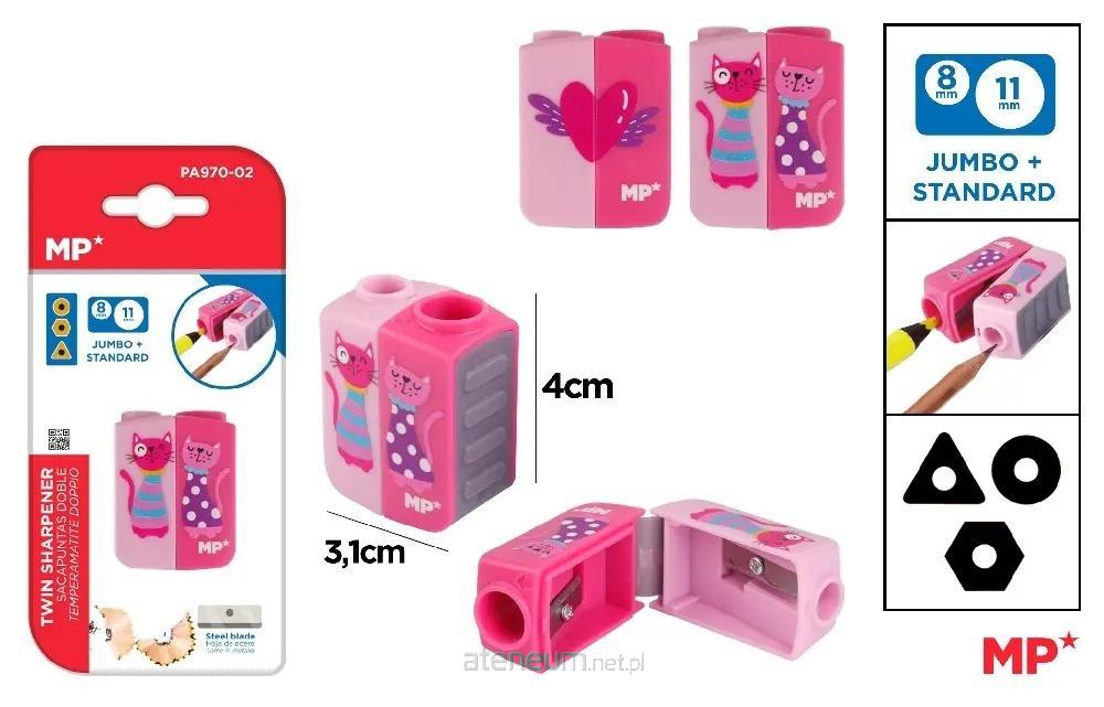 Temperówka podwójna jumbo + standard - Kotki / serce