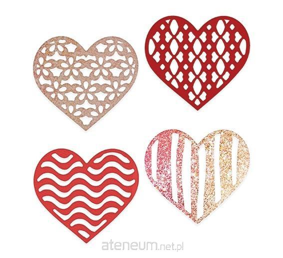 Zestaw wykrojników złożony z czterech wzorów ażurowych serc do tworzenia unikatowych prac z papieru, tektury i pianki.