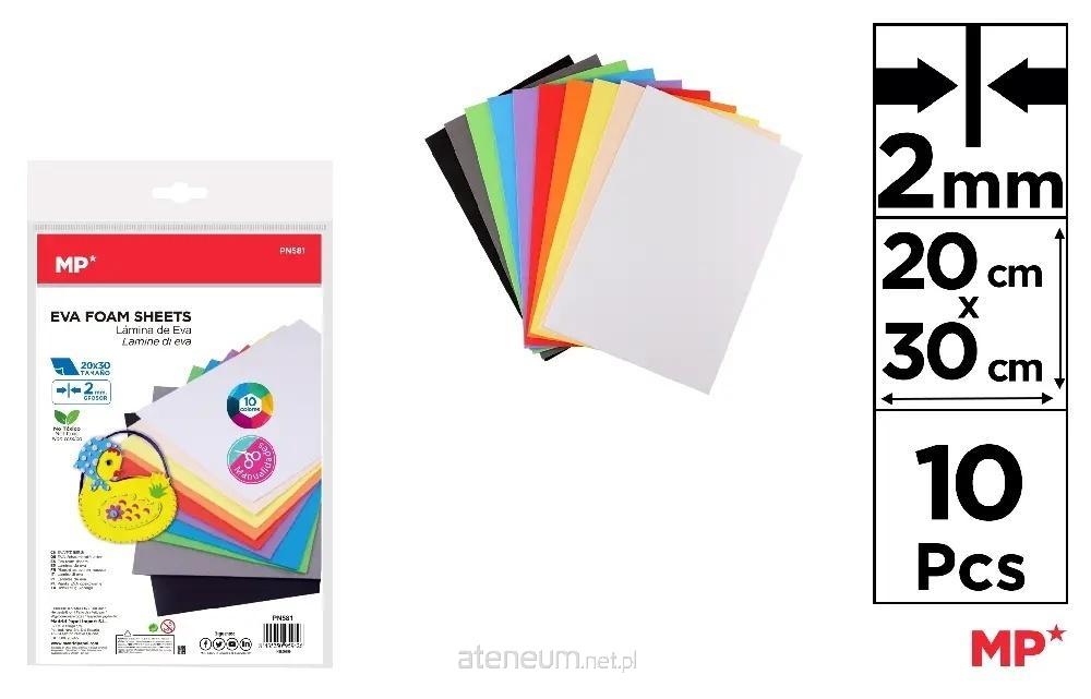 Pianka dekoracyjna EVA 2mm 10 kolorów 20x30cm 10 arkuszy MP