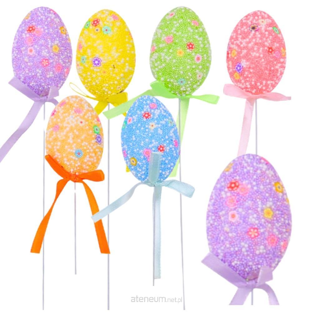 JAJKA WIELKANOCNE NA PIKU DRUCIKU KOLOROWE Z BIAŁYMI KULECZKAMI I WZORKAMI 6SZT Jajka wielkanocne na druciku to doskonały sposób na udekorowanie Twojego domu na Święta Wielkanocne. Każde jajko zostało starannie ozdobione styropianowymi kuleczkami oraz małymi wzorkami, co nadaje im wyjątkowego charakteru. Kolorowe jajka w pastelowych odcieniach, świetnie pasują do wiosennej atmosfery. Wstążeczka w tym samym kolorze co jajko sprawia, że dekoracja wygląda jeszcze bardziej elegancko i spójnie. Dodatkowo, elastyczny drucik ułatwia umieszczanie jajek w dowolnym miejscu, co pozwala na ich swobodne eksponowanie. Jajka doskonale sprawdzą się jako ozdoba na stole wielkanocnym. Dzięki swoim delikatnym kolorom i wielkanocnemu charakterowi, stanowią świetny wybór na świąteczne dekoracje do domu, ogrodu czy biura. SPECYFIKACJA: Wymiary jajka: 5 cm x 3,5 cm Wysokość ozdoby: 24 cm Kolory jajek: Żółty, Niebieski, Pomarańczowy, Fioletowy, Zielony, Różowy Materiał jajek: Styropian Wykończenie: Styropianowe kuleczki i wzorki, wstążeczka w kolorze jajka Dodatkowe cechy: Elastyczny drucik do łatwego umieszczania dekoracji ZAWARTOŚĆ ZESTAWU: 6 jajek wielkanocnych na patyku Każde jajko ozdobione styropianowymi kuleczkami i wzorkami Elastyczny drucik do łatwego umieszczania dekoracji