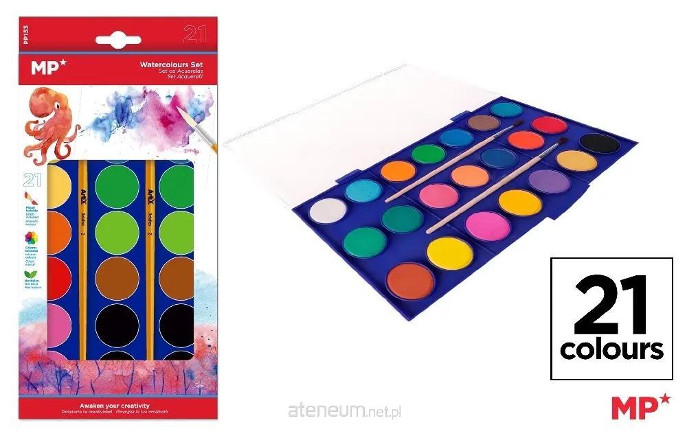 Farby akwarelowe z pędzelkiem 21 kolorów MP