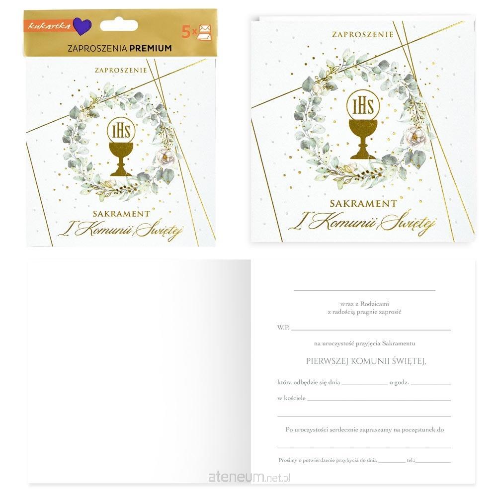 Kartka wielkości B6, zdobiona w zależności od wzoru metaliczną folią lub brokatem. Każda kartka posiada kolorowe życzenia w środku i dopasowaną kopertę w komplecie.