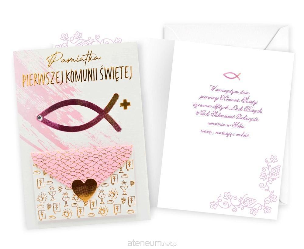 Kartka Dream Cards na I Komunię Świętą DK-1244 Kartka B6 z ozdobnej serii Dream Cards - nieduża, ale robi wrażenie dzięki atrakcyjnej kolorystyce i ciekawym zdobieniom. To idealny wybór łączący przyjazną cenę z jakością. Cechy szczególne: wielkość: B6, 16.6 x 11.7 cm po złożeniu, koperta: w zestawie, kolorowa, zdobienia: kolorowe, różnorodne, bogate (w zależności od wzoru: przyklejane dekoracje, elementy biżuteryjne, odstawniki, metaliczne folie, tłoczenia itp.), okazja: Komunia Święta