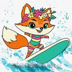 Zawartość zestawu: dwa obrazki do pokolorowania 20 x 20 cm, ramka, 12 pojemniczków 5,4 ml z farbami akrylowymi, 1 pędzelek, 2 szablony z grafikami i numerami.