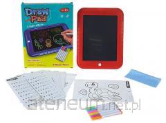 Obrotowa, kolorowa suchościeralno-kredowo-magnetyczna tablica z 2-rzędowym liczydłem. Zegar z ruchomymi wskazówkami. Gąbka, kreda, marker, literki magnetyczne w zestawie.