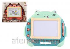 Kolorowa tablica magnetyczno-suchościeralno-kredowa dla małych artystów.Wyposażona dodatkowo w: 4 szt kubków na farbę, po stronie magnetycznej klips na kolorowanki, kredę, gąbkę, marker suchościeralny. Załączona pod klips kolorowanka gratis !!