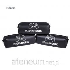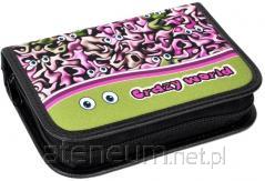 Piórnik MILAN mini płaski. Kolekcja Tandem 2, w której postacie o zupełnie innym charakterze przemierzają noc w tandemie. Dinozaury, krokodyle i kosmici jadą w tandemie, a zabawne tosty, jajka i rogaliki robią to samo. Wszyscy pracują w grupach i wiosłują w tym samym kierunku. Biało-czarne nadruki, na zielonym tle. Materiał zewnętrzny i wewnętrzny 100% poliester. Rozmiar: 23 x 9 x 1,5 cm.