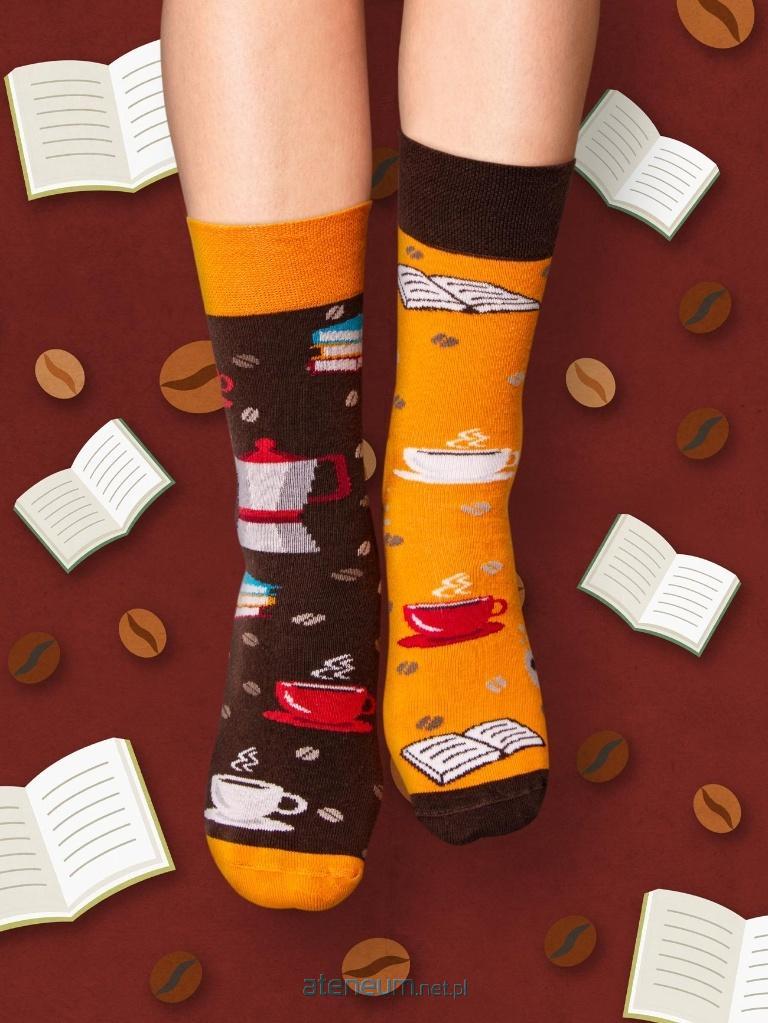 Śmieszne skarpetki KSIĄŻKI I KAWA to nieodłączny element stylizacji każdego miłośnika kawy i książkoholika! Czy może być lepsze połączenie niż ciepłe kolorowe skarpetki, dobra książka, aromatyczna kawa i pyszne ciastko? Bawełniane skarpety w książki to idealny pomysł na prezent dla mola książkowego! Sprawdzą się także jako prezent dla kawosza z okazji urodzin lub świąt Bożego Narodzenia. Śmieszne skarpetki KSIĄŻKI I KAWA zostały stworzone od A do Ż w Polsce z miłości do rodzimej literatury i piękna polszczyzny. Co kupić na prezent dla mola książkowego? Nie miej już dłużej wątpliwości! omarańczowo-brązowe skarpety asymetryczne Skład: 80% najwyższej jakości bawełna czesana, 17% poliamid (dodaje wytrzymałości), 3% elastan (skarpetka lepiej dopasowuje się do stopy) Nieuciskający ściągacz i komfortowy płaski szew na palcach Idealne skarpety na prezent dla mola książkowego i kawosza Prać zawsze na lewej stronie w temperaturze maks. 40 C, nie prasować Wyprodukowano w Polsce.