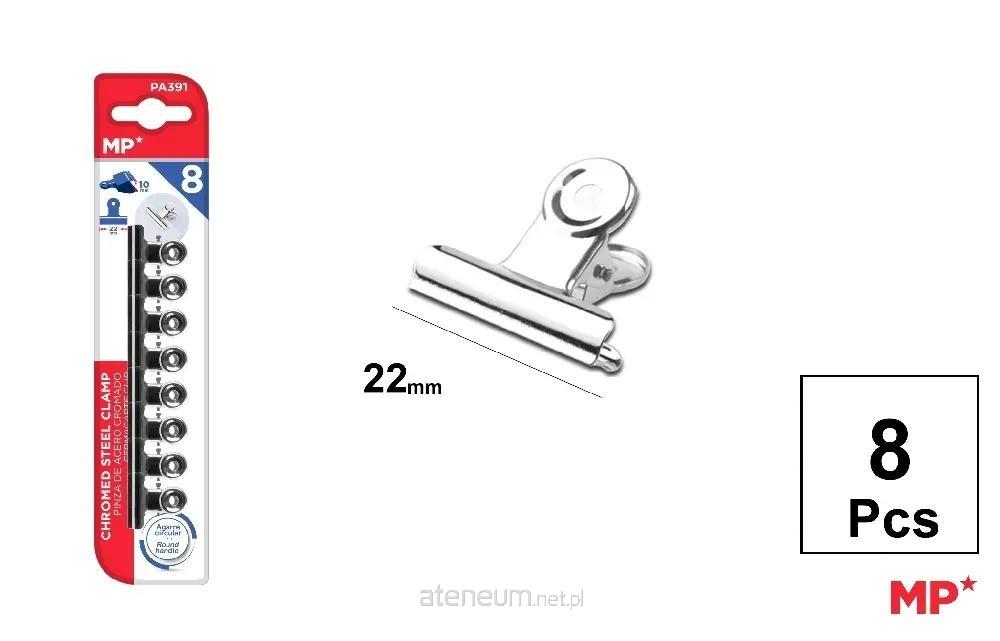 Klipsy biurowe metalowe srebrne 22mm 8szt