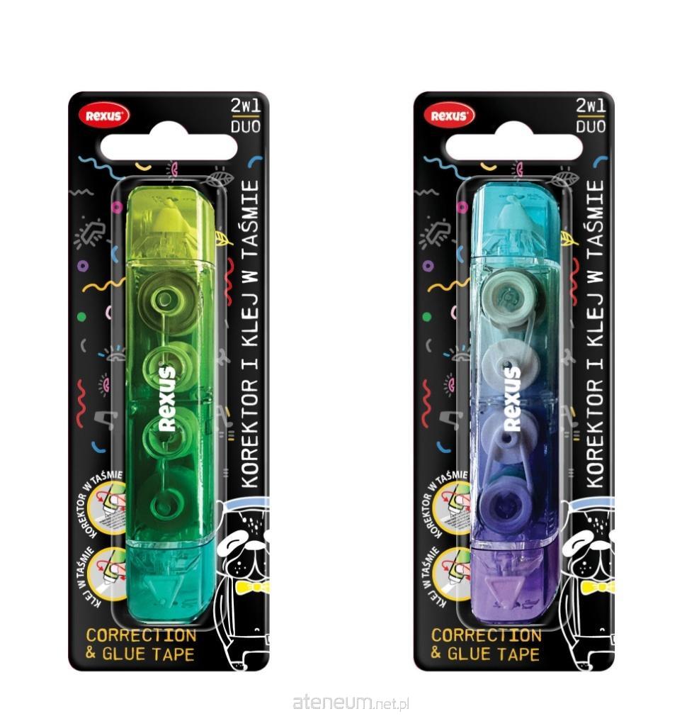 Uniwersalny produkt 2w1- korektor i klej w formie taśmy, zapewniający łatwe iwygodne korzystanie,idealny do przechowywania w piórniku. Z jednej strony narzędzia znajduje się korektor a, z drugiej klej. Idealnie kryjący korektor, po którym można pisać. Klej z szybką aplikacją, nie brudzi rąk.
