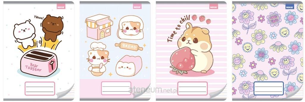 Dodatkowo, środek zeszytu został zadrukowany trzylinią w różnych kolorach, co ułatwia organizację notatek oraz czytelność zapisanych treści.