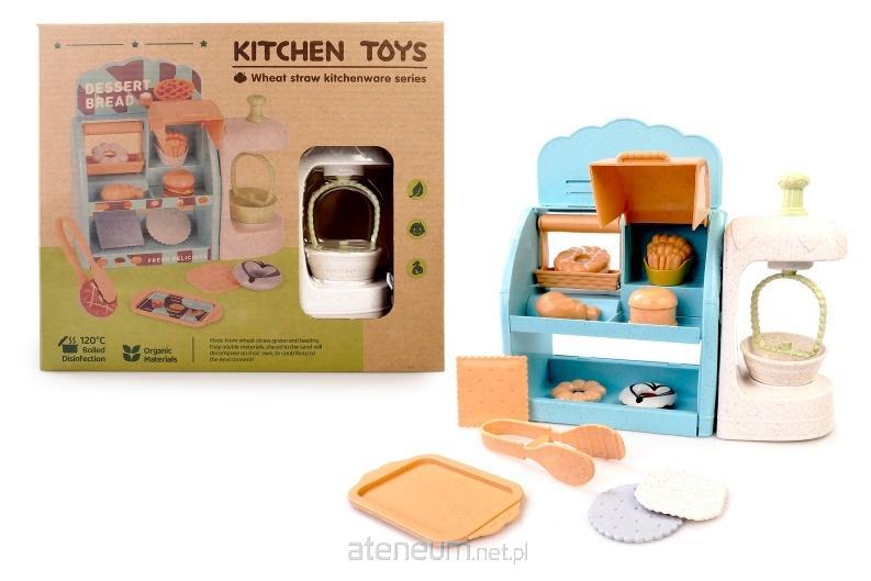 W zestawie: mini regał z mikserem, tacka, szczypce, 9 rodzajów wypieków, funkcje: naciśnięcie przycisku wprawia mieszadełka miksera w ruch, wymiary zabawki: 22 x 20 x 7 cm, wymiary opakowania: 27 x 23 x 7,5 cm, 3+