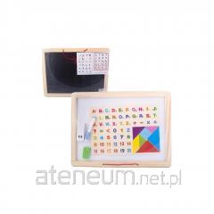 Obrotowa, suchościeralno-kredowo-magnetyczna fioletowa tablica z rolką papieru i liczydłem. Oprócz liczydła i papieru wyposażona w gąbkę, kredę, marker.