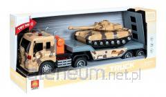 auto ciężarowe z lawetą i koparką, metalowe, 30x10,5x7cm, światło, dźwięk,
