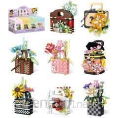 zestaw klocków - kaktus w doniczce, mix wzorów, od 120 do 136 elem. w zestawie, display 6szt, 15x11x9cm Box; 34x18,7x15,4cm, Box