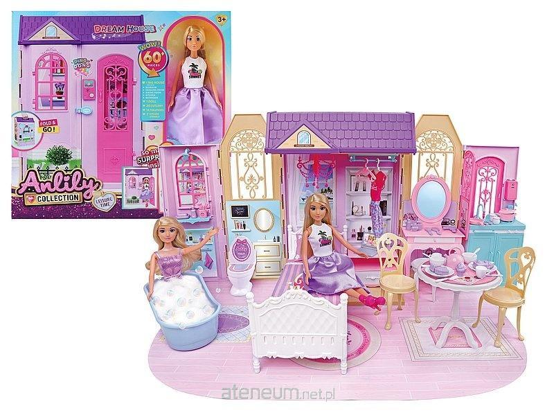 domek z lalką 29cm, plastikowy, z wyposażeniem; 39,5x38x16,5cm, W/B