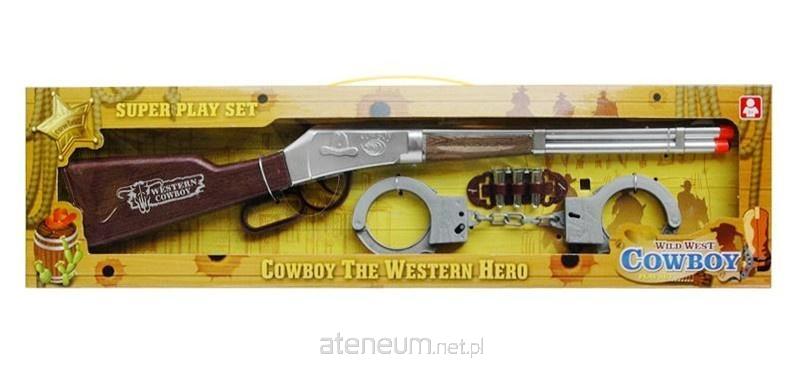 Karabin dla dzieci z dźwiękiem. Kiedy naciśniesz spust zabawka wyda dźwięk strzelania niczym jak z westernów. Poza karabinem w zestawie można znaleźć naboje i kajdanki. Produkt dla dzieci od 3 lat. Zabawka zapakowana w kartonowe opakowanie z przezroczystym okienkiem. Podane wymiary są wymiarami opakowania.
