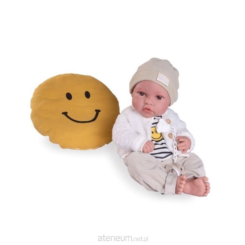 Zaprojektowana i stworzona z dbałością o każdy detal, lalka hiszpańska 50423 to wyjątkowy projekt Antonio Juan. Jedna z najbardziej rozpoznawalnych marek proponuje uroczego chłopca o słodkiej twarzyczce, w zestawie z uśmiechniętą poduszką. 42- centymetrowy bobas przypomina prawdziwe niemowlę. Ma zaznaczoną płeć. Jest wykonany z gładkiego, miękkiego, bezpiecznego dla dzieci winylu. Zachwyca wysokiej jakości szyty ręcznie strój z aplikacją w kształcie radosnej emotki. Dlaczego warto wybrać dla dziewczynki lalkę hiszpańską o imieniu Erik? Lalka hiszpańska Antonio Juan 50423 wygląda jak żywe dziecko: brązowe, ręcznie malowane oczy opatrzone są długimi rzęsami i brwiami, uroku dodają lśniące usteczka oraz rumiane policzki, wyrzeźbione na główce włosy zapewniają najmłodszym bezpieczeństwo podczas zabawy, dopracowane paznokcie, linie papilarne oraz fałdki dodają bobasowi realizmu. Uzupełnij kolekcję lalek hiszpańskich o winylowego bobasa w kostiumie króliczka! Lalka hiszpańska 50423 marki Antonio Juan to marzenie każdego dziecka, uwielbiającego zabawę w odgrywanie ról. Autentyczny wygląd pozwala z łatwością wcielić się w rolę troskliwego rodzica. Erik ubrany jest w oryginalnie zaprojektowany outfit: bluzeczkę w paski z aplikacją, sztruksowe spodenki, biały sweterek oraz czapeczkę. Strój z łatwością można zdjąć, a bobasa przebrać lub wykąpać. W zestawie także żółta poduszka poprawiająca humor oraz przypinany smoczek na łańcuszku. W całości wykonany w Hiszpanii luksusowy winylowy chłopiec zapakowany jest w firmowe, biało-różowe pudełko ozdobne z wieczkiem. Może ono posłużyć także jako łóżeczko dla bobasa.