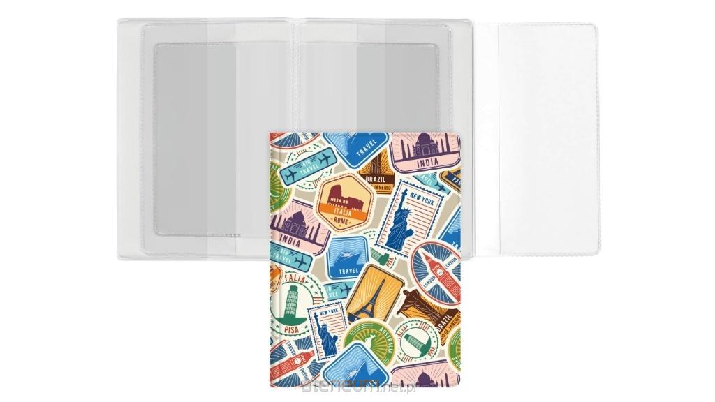 Okładka wykonana z folii PVC z pełnym, ozdobnym nadrukiem, wewnątrz usztywniona tekturą. Wyposażona w 2 pojedyncze koszulki na dokumenty w formacie ID-1, koszulkę trójdzielną z dodatkową kieszonką oraz 2 kieszenie na wewnętrznej stronie okładek. Przeznaczona na dokumenty osobiste i kierowcy, tj. Dowód osobisty, prawo jazdy, dowód rejestracyjny i inne.