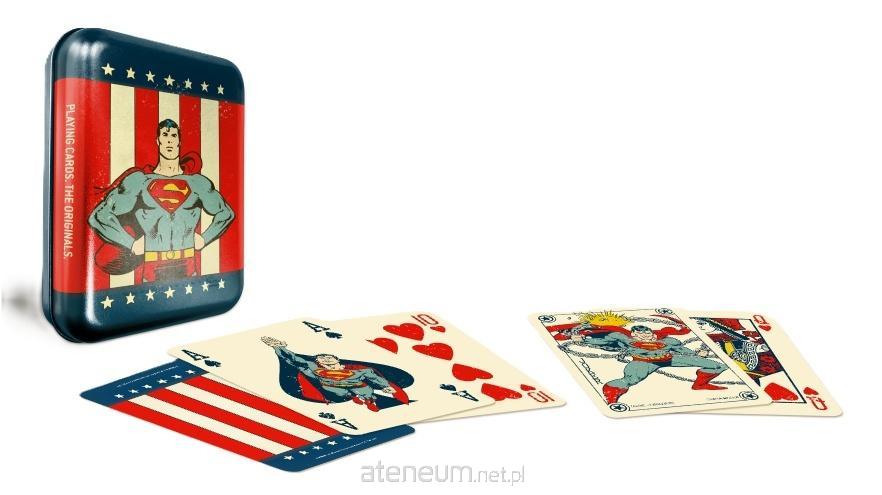 Stylizowana kultowym komiksem o Supermenie talia kart do gry. 55 kart pakowanych w personalizowaną metalowa puszkę.
