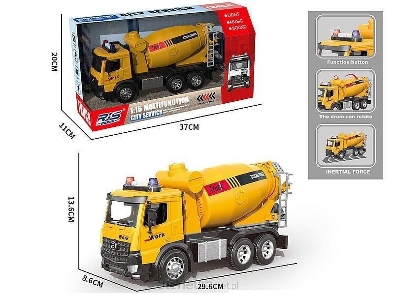 auto ciężarowe 1:16 betoniarka, napęd na koło zam; 37x20x11cm, W/B