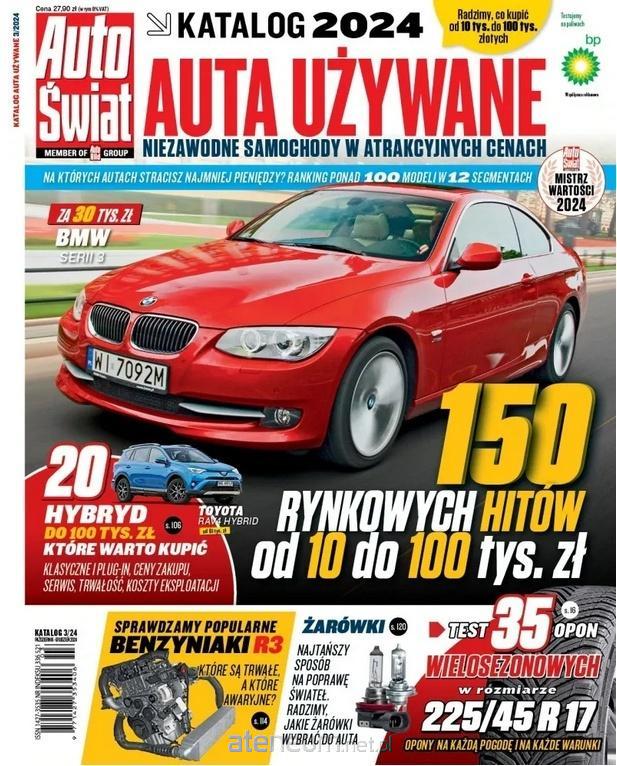 Auto Świat Katalog Najlepsze Auta Używane to publikacja, która cieszy się dużym uznaniem wśród czytelników. Podobnie jak w ubiegłym roku zakres cenowy opisywanych to 100 tys. zł. Zaprezentujemy więc najlepsze samochody do 20, 20-30, 30-50, 50-70 i 70-100 tys. zł. Wymienimy zalety i wady, polecimy silniki, podpowiemy, którą wersję wybrać i z jakich lat. W sumie 150 aut od 10 do ok. 100 tys. zł, którymi warto się zainteresować. Oprócz opisów i recenzji modeli w katalogu zamieścimy praktyczne porady, pomocne w wyborze, ocenie stanu technicznego, a także eksploatacji auta. Zaprezentujemy testy opon całorocznych, pokażemy jak prawidłowo serwisować samochód. W katalogu opublikujemy też wyniki prestiżowego rankingu: Mistrz Wartości 2024.