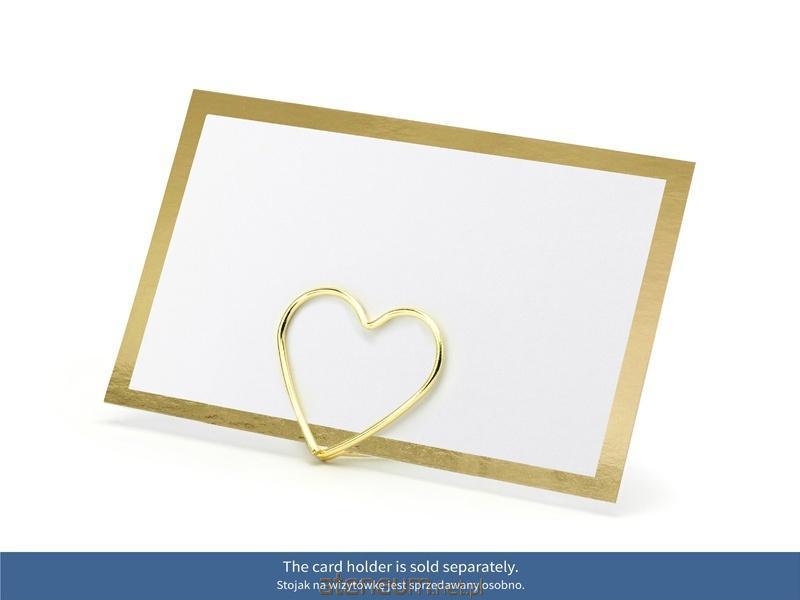 Wizytówki na stół wykonane z papieru w kolorze białym, ze złotą metalizowaną ramką, wymiary ok. 9,5 x 5,5 cm.(1 op. / 10 szt.)