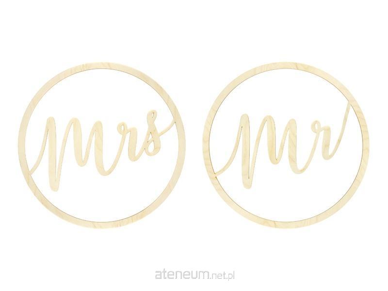 Zawieszki dekoracyjne wykonane z drewna, zestaw zawiera zawieszkę z napisem Mr oraz zawieszkę z napisem Mrs, średnica ok. 38 cm.(1 op. / 2 szt.)