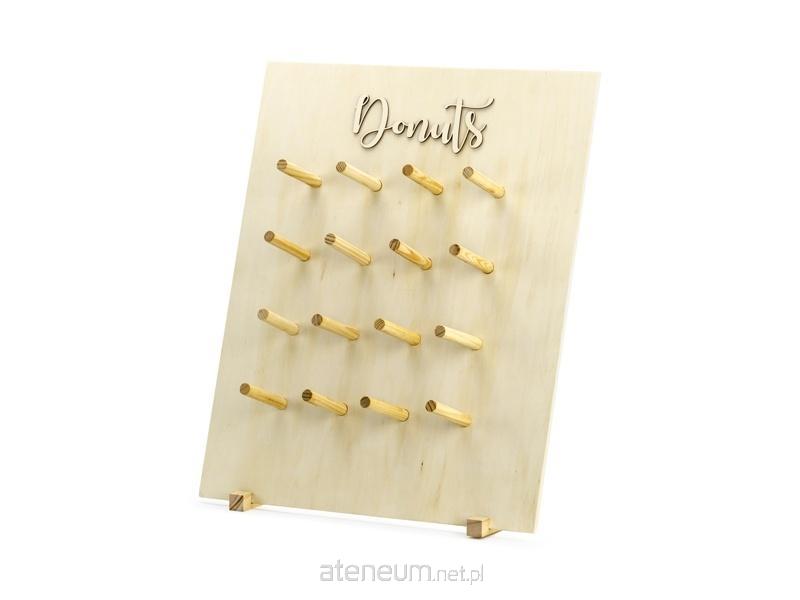 Drewniana Ściana na Donuty z 16 kołkami do samodzielnego zamontowania, szerokość ok. 45 cm, wysokość ok. 55 cm.