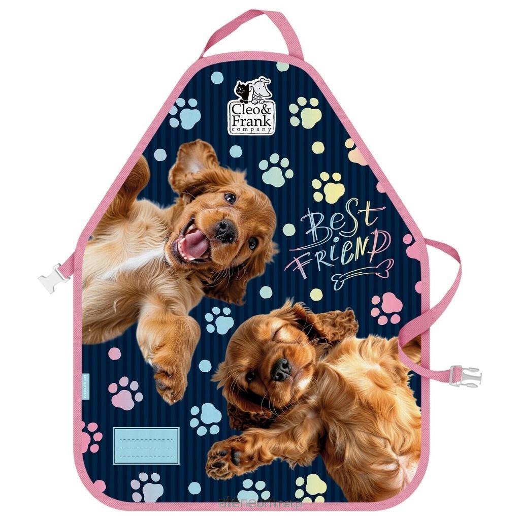 Ochronny fartuszek zapinany na klamrę, zabezpiecza odzież przed zabrudzeniem podczas prac kuchennych, plastycznych oraz różnych zabaw kreatywnych. Posiada etykietę na wpisanie danych dziecka. Może być prany ręcznie w temperaturze 30 stopni.