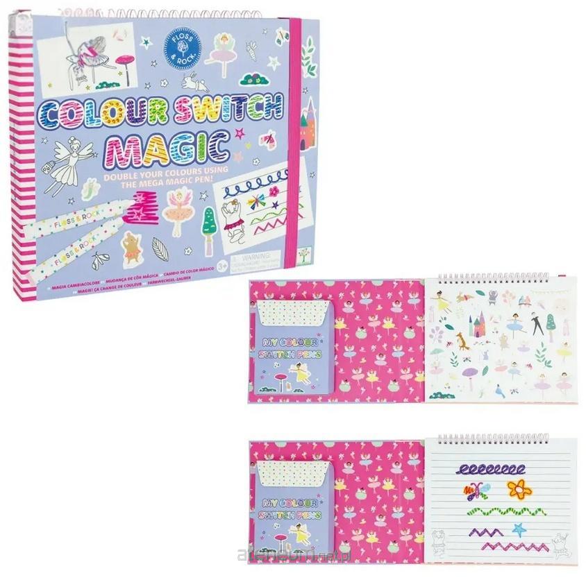 Zestaw Magia Kolorów to niekończąca się kreatywna zabawa! Dzięki magicznemu pisakowi możesz zamieniać kolory i tworzyć niesamowite wzory. Idealny do nauki pisania, rysowania i rozwijania zdolności manualnych! Każdy zestaw zawiera 10 stron do rysowania, 5 stron do kolorowania, 6 pisaków zmieniających kolor, 1 magiczny pisak, 5 stron w linie do pisania oraz 2 strony z naklejkami. Zestaw Magia Kolorów to nie tylko wyjątkowe pisaki, ale także książeczka pełna kreatywnej zabawy!