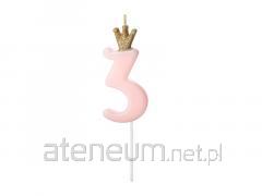 Świeczka urodzinowa 3 jasny różowy 9,5cm