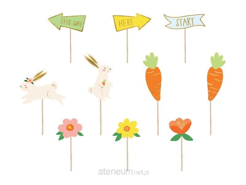Zestaw do szukania jajek, mix wzorów i kolorów, zestaw zawiera 10 topperów na pikach (1 sztuka z każdego wzoru), wymiary patyczka ok. 20 cm, wymiary topperów ok. 8 - 22.5 x 6 - 24 cm.(1 op. / 10 szt.)