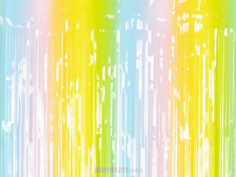 Kurtyna Party mocowana na taśmę dwustronną przyczepioną do kurtyny, mix kolorów: jasny zielony, żółty, pomarańczowy, jasny różowy, liliowy, jasny niebieski, szerokość ok. 100 cm, długość ok. 195 cm.
