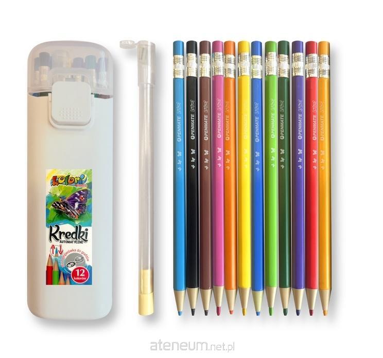 Penmate kolori kredki automatyczne w tubie 12 kolorów + temperówka