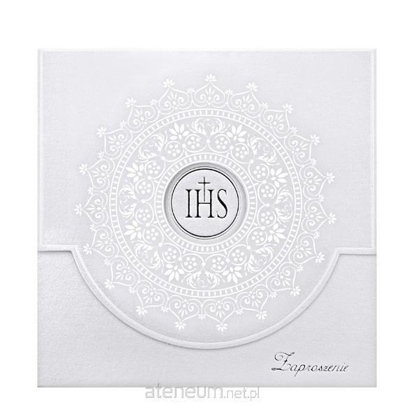 Zaproszenia komunijne w kolorze białym z ornamentem, w zestawie z kopertami.(1 op. / 10 szt.)