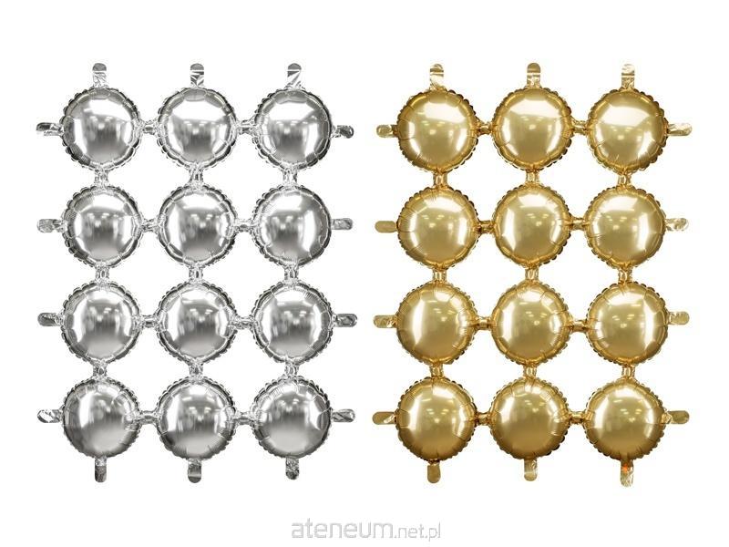 Tło foliowe balonowe Koła dwustronne glossy, z jednej strony w kolorze złotym, z drugiej strony w srebrnym. Wymiary przed napompowaniem ok. 100 x 136 cm (39,5 x 53,5''), wymiary po napompowaniu ok. 78 x 107 cm (30,5 x 42''). Do napompowania powietrzem. Zestaw zawiera słomkę.