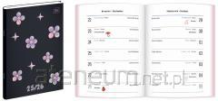 "Kalendarz książkowy. Układ kalendarium tygodniowy. Format A5;120 str, oprawa miękka. Format 145 mm x 210 mm. Łączony na spirali po długim boku, zadruk full kolor, kalendarium od września 2025 do sierpnia 2026, Rozkład kalendarium tygodniowy, tabele ocen, szkolne tabele miar, itp.Tabele ułatwiające zapisywanie terminów sprawdzianów, tabele do wpisywania ocen oraz tytułów lektur, obrazkowa instrukcja udzielania pierwszej pomocy, tabele ułatwiające naukę np.: jednostki miar, wzory matematyczne itp."