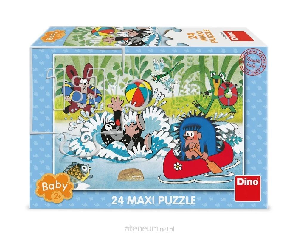 Krecik - Puzzle Baby Maxi "Wodne zabawy" 24 elementy. Ten wyjątkowy zestaw składa się z 24 dużych, solidnych elementów, które zostały zaprojektowane z myślą o najmłodszych. Obrazek po ułożeniu przedstawia Krecika i jego przyjaciół w kolorowej scenie wodnej o wymiarach 66 x 47 cm. Bezpieczne dla najmłodszych: puzzle wykonane z trwałych i nietoksycznych materiałów. Duże elementy idealne dla małych rączek. Puzzle rozwiją zdolności manualne, koordynację wzrokowo-ruchową oraz koncentrację. Wesołe sceny z Krecikiem przyciągają uwagę i zachęcają do zabawy. Wiek dziecka: przeznaczone dla maluchów od 2. roku życia. Obrazek po ułożeniu ma wymiary 66 x 47 cm Wymiary opakowania: 29,5 x 20 x 6 cm Wyprodukowane w Czechach Producent Dino Certyfikat bezpieczeństwa CE
