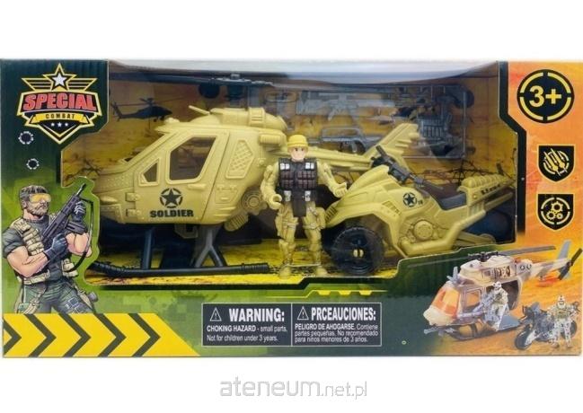 Zestaw zabawek militarnych "Special Combat" to ekscytująca propozycja dla małych fanów akcji i wojskowych przygód. W solidnym, kolorowym opakowaniu znajduje się helikopter w odcieniach piaskowego khaki, wyposażony w ruchome śmigła, co dodaje realizmu podczas zabawy. Obok helikoptera znajduje się figurka żołnierza w wojskowym umundurowaniu, gotowego do wykonania specjalnych misji. W zestawie jest również pojazd terenowy typu quad w pasującym kolorze, który urozmaica scenariusze zabawy i umożliwia szybkie przemieszczanie się po "polu bitwy". Zabawka przeznaczona jest dla dzieci powyżej 3 roku życia, o czym informuje oznaczenie na opakowaniu. Należy zwrócić uwagę na ostrzeżenie o ryzyku zadławienia ze względu na małe elementy, dlatego nie jest odpowiednia dla dzieci poniżej tego wieku. Całość utrzymana jest w militarnej stylistyce, z detalami nawiązującymi do wyposażenia wojskowego. Grafika na opakowaniu przedstawia dynamiczną scenę z udziałem pojazdów i żołnierza, co dodatkowo zachęca do zabawy. Jest to idealny prezent dla dzieci, które lubią kreatywne zabawy w odgrywanie ról i tworzenie własnych scenariuszy akcji.