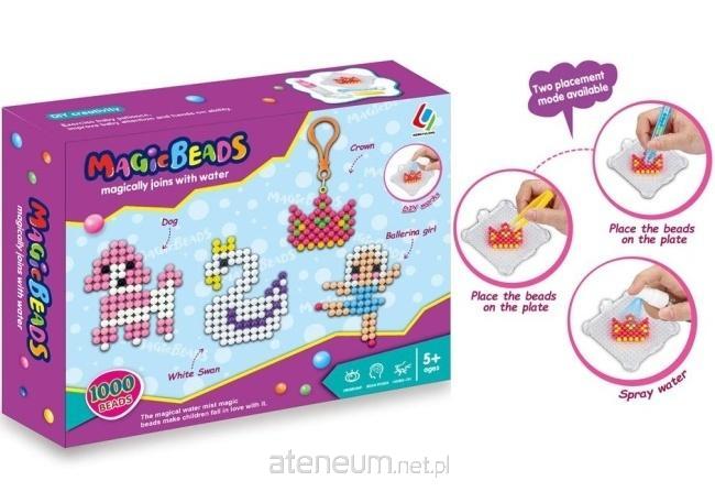 Odkryj fascynujący świat Magic Beads! Ten kreatywny zestaw pozwala dzieciom w prosty i magiczny sposób tworzyć trójwymiarowe figurki. Wystarczy ułożyć kolorowe koraliki na specjalnej podkładce według wzoru (piesek, biały łabędź, balerina, korona) lub własnej wyobraźni, a następnie spryskać je wodą. Koraliki połączą się, tworząc trwałą konstrukcję! Zestaw zawiera aż 1000 wysokiej jakości, bezpiecznych koralików w różnorodnych kolorach, podkładkę do układania, aplikator do koralików oraz instrukcję z przykładowymi wzorami. Zabawa Magic Beads rozwija zdolności manualne, kreatywność i wyobraźnię przestrzenną u dzieci. Możliwość tworzenia breloczków dodaje dodatkowej frajdy i pozwala dzieciom cieszyć się swoimi dziełami na co dzień. Idealny prezent dla dzieci w wieku 5 lat i starszych, które uwielbiają prace manualne i tworzenie własnych zabawek.