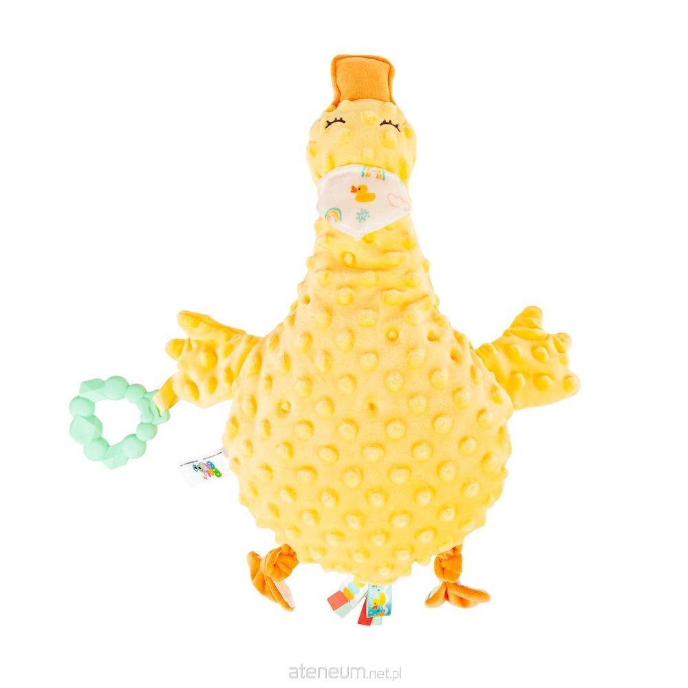 Żółciutka kaczuszka to wymarzona przytulanka każdego bobasa! Jest milusia i urocza, a jej skrzydełko zdobi gryzaczek, który przyniesie ulgę obolałym dziąsłom ząbkującego dziecka. Zabawka posiada szeleszczące skrzydełko, chusteczkę na szyi i metki doszyte w miejscu ogonka. Kaczuszka uszyta została z materiałów o zróżnicowanych fakturach, dzięki czemu zabawa z nią wspomaga rozwój zdolności poznawczych malucha.