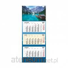 Kalendarz ścienny trzymiesięczny z okienkiem; 12 kart. Główki wypukłe 2 wzory.Łączenie spirala. Wymiary po rozłożeniu 310x710x7 mm.